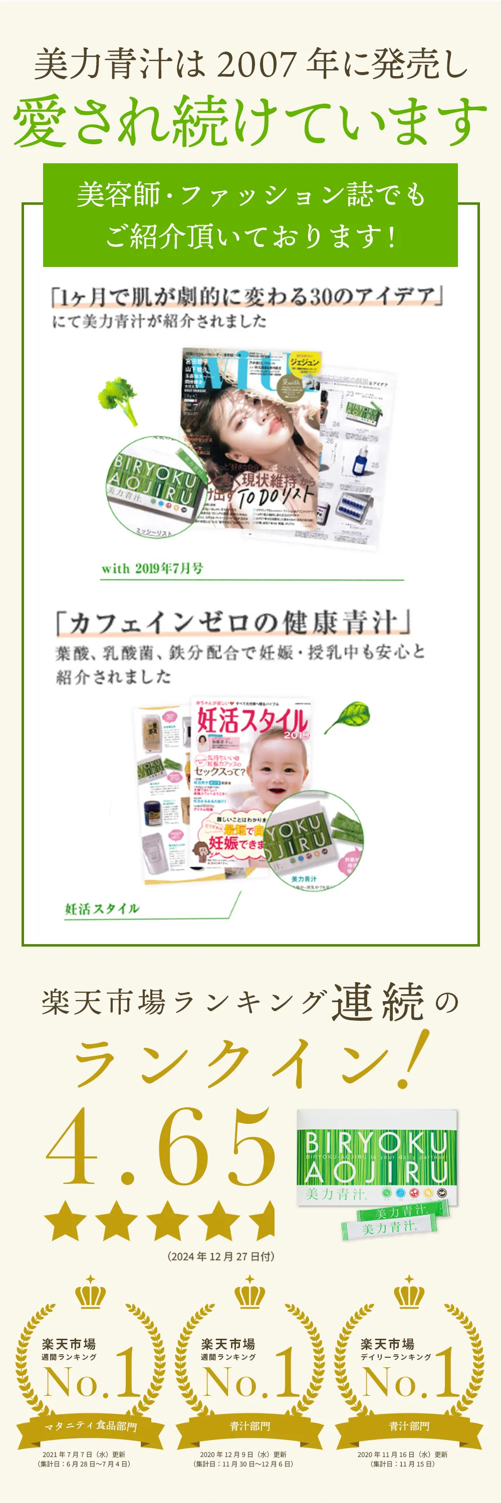 美力青汁│雑誌でも紹介され、楽天ランキング連続1位獲得!