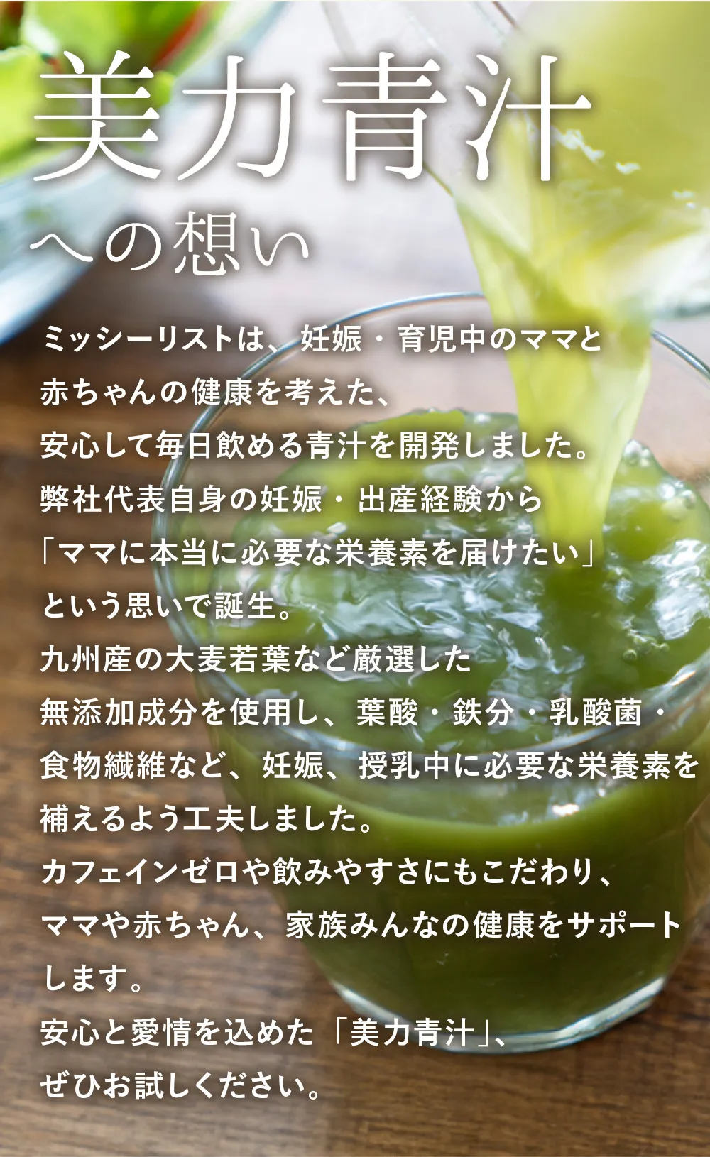 美力青汁│ママやお子さまに必要な栄養素を詰め込みました!