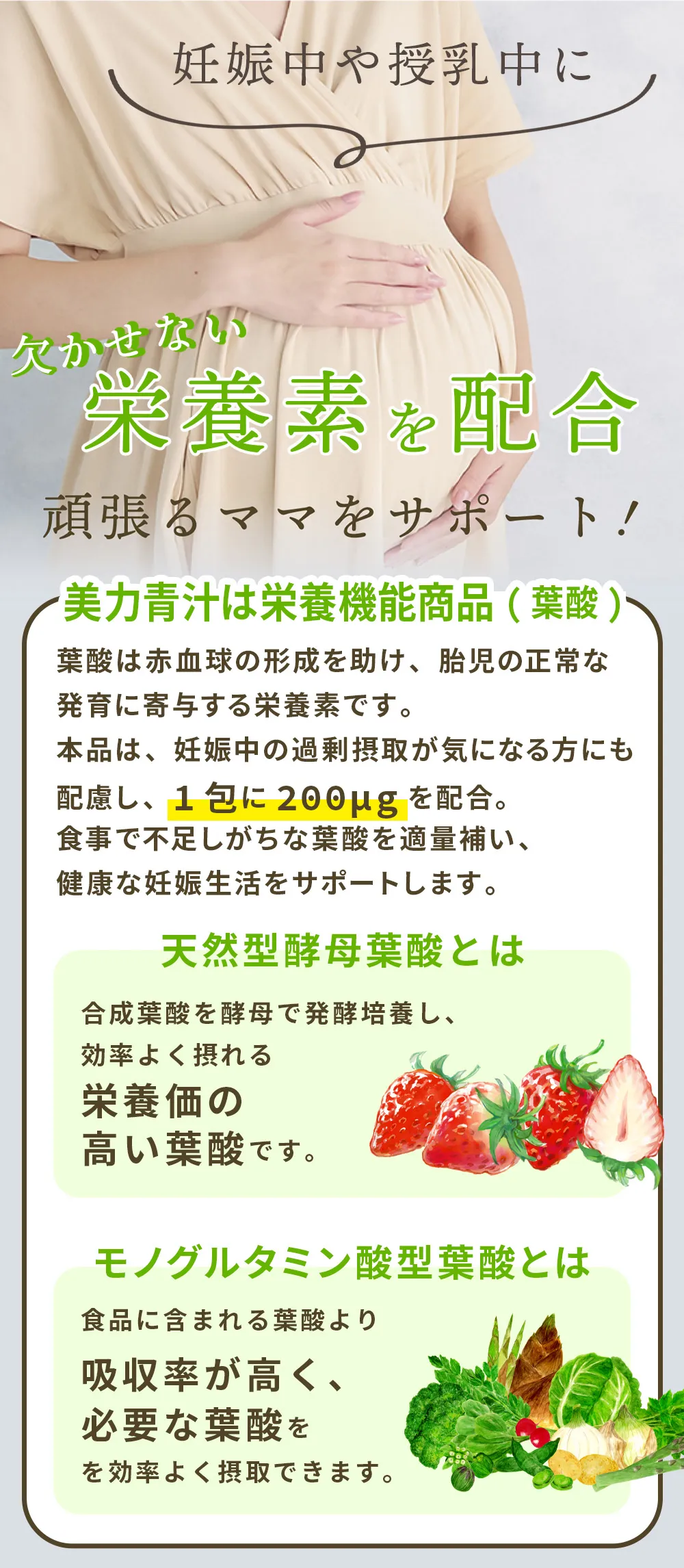 美力青汁│妊娠中や授乳期にも嬉しい栄養素を配合