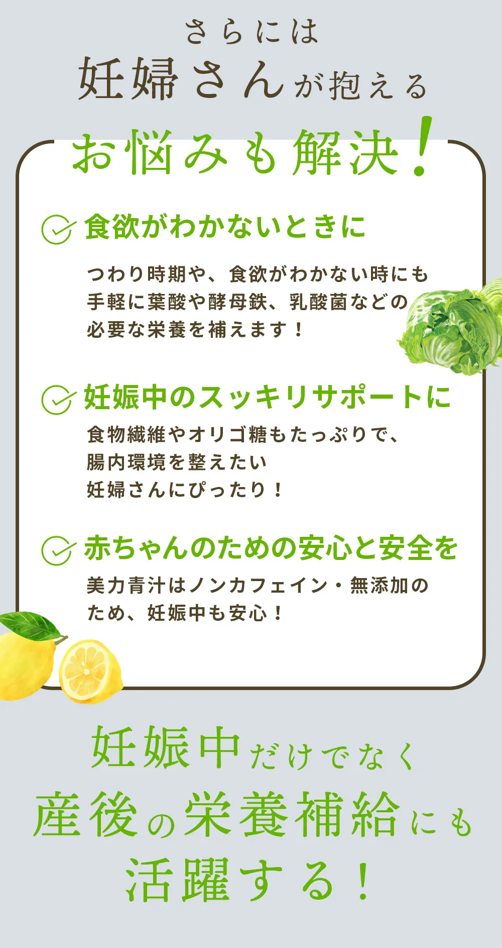 美力青汁│マタニティ期や育児中の栄養・健康サポート商品を求めるママへ