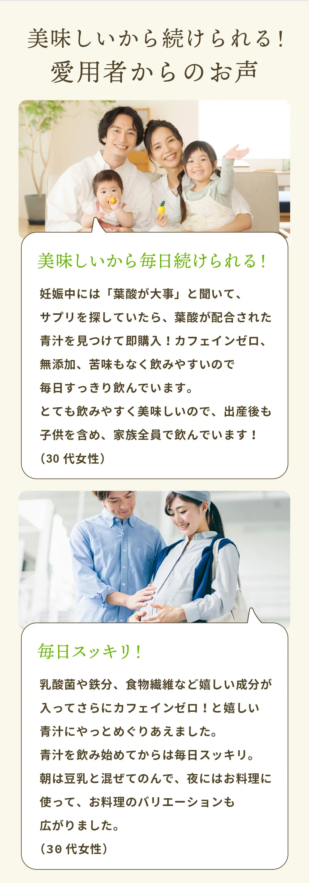 美力青汁│妊娠中、育児中の方からも嬉しい声いただいています!